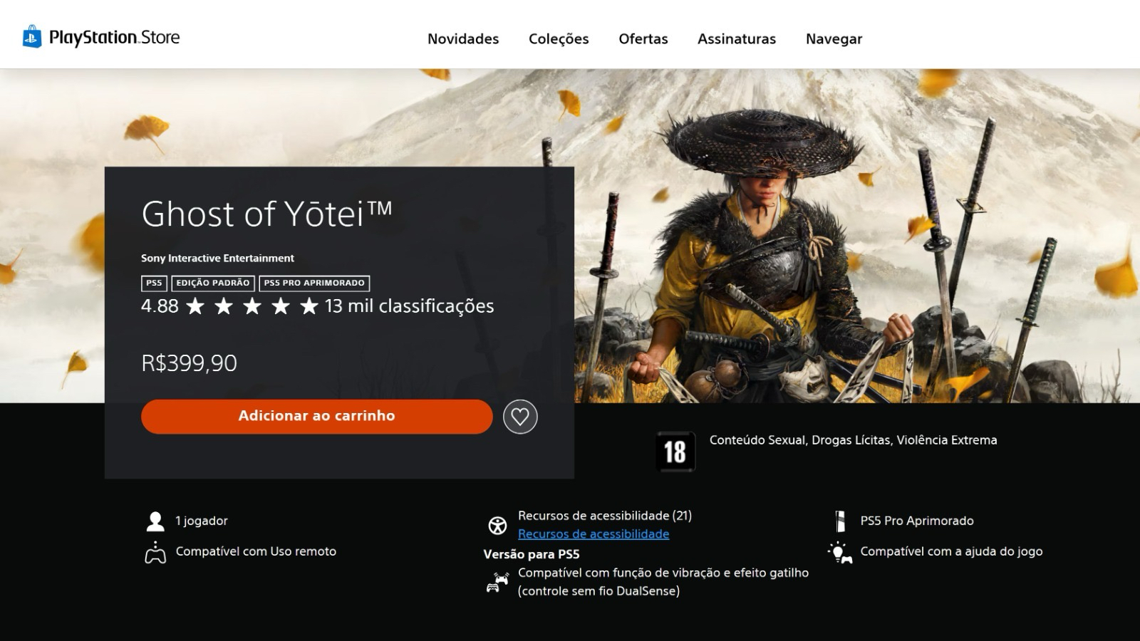 O recém-lançado Ghost of Yōtei já figura entre os maiores sucessos recentes da PlayStation Store. O título da Sucker Punch Productions acumula uma média de 4,88 estrelas em 5 possíveis, baseada em mais de 13 mil avaliações registradas até agora. O dado impressiona não apenas pela alta nota, mas também pela credibilidade do sistema: somente jogadores que efetivamente compraram o jogo podem avaliá-lo na plataforma, o que reforça o peso da aprovação.