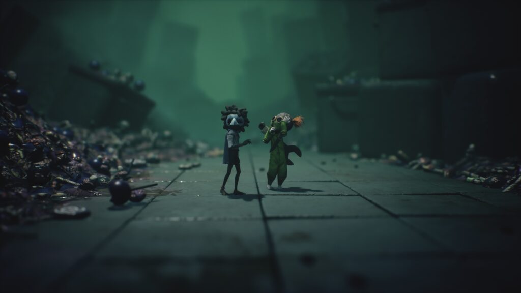 Os ambientes foram cuidadosamente construídos para transmitir o desconforto e curiosidade já tão conhecidos. A paleta de cores está mais variada, devido aos diferentes cenários percorridos na campanha, reforçando a atmosfera sem perder o tom de pesadelo infantil que define o universo de Little Nightmares.