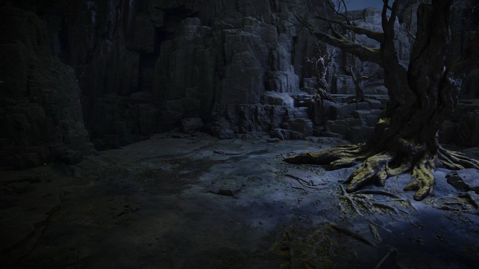 Em uma das imagens, é possível ver piscinas de enxofre amarelo nas cavernas, uma possível mecânica de gameplay, talvez associada a efeitos de status negativos ou desafios ambientais. Outro ponto curioso é que o Arsenal de Hades aparece em dois estados diferentes, um deles tomado por uma corrosão vermelha, descrita como uma “maldição”. Isso sugere que o jogo teria mecânicas dinâmicas de progressão nos cenários, talvez ligadas a modificadores de dificuldade ou elementos cooperativos que exigissem coordenação entre os jogadores.