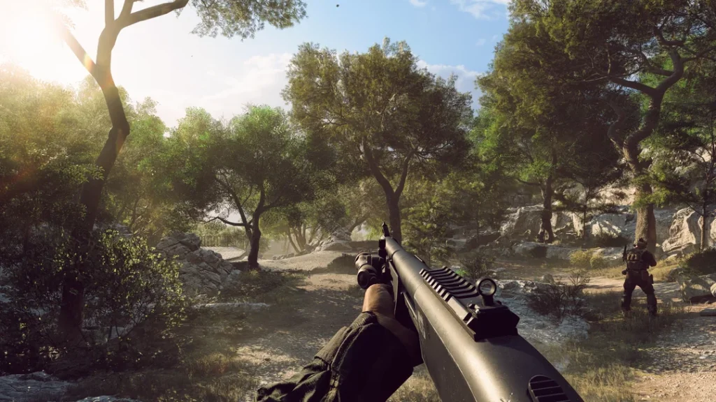 Os ambientes são belos e grounded, com céus azuis vibrantes, grama ondulante e desertos que ganham vida com poeira e detritos, enquanto o áudio – de estalos de sniper a roncos de motores – imerge como poucos. A física de destruição é satisfatória, colapsando estruturas de forma orgânica sem sobrecarregar o sistema, e não há ray tracing ou iluminações globais que compliquem o desempenho.