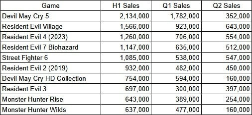 A Capcom destacou que o título teve seu maior pico de vendas no primeiro trimestre fiscal, demonstrando força comercial sustentada e alto engajamento entre os jogadores. Além do sucesso da saga de Dante e Nero, o relatório aponta que três títulos da franquia Resident Evil também figuram entre os destaques de vendas: Resident Evil Village, Resident Evil 4 Remake e Resident Evil 7: Biohazard. Cada um deles superou a marca de 1 milhão de cópias vendidas durante o período analisado, reforçando a consistência da marca como pilar central da Capcom. Street Fighter 6 completa a lista dos jogos mais vendidos da empresa no trimestre.