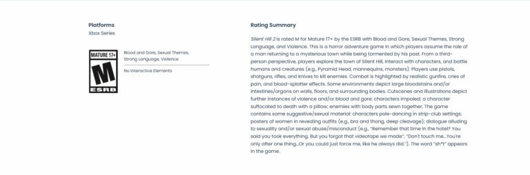 O remake de Silent Hill 2, desenvolvido pela Bloober Team, pode estar prestes a desembarcar nos consoles Xbox Series S e Series X. O título, já lançado para PlayStation 5 e PC, recebeu recentemente uma classificação indicativa da ESRB (órgão responsável pela faixa etária de jogos na América do Norte), sinalizando que o anúncio oficial para os consoles da Microsoft está próximo. Segundo a classificação, a versão para Xbox manterá a mesma experiência das demais plataformas, incluindo nota “Mature 17+” por conter violência intensa, sangue e temas perturbadores, preservando a atmosfera de terror psicológico que marcou o jogo original.