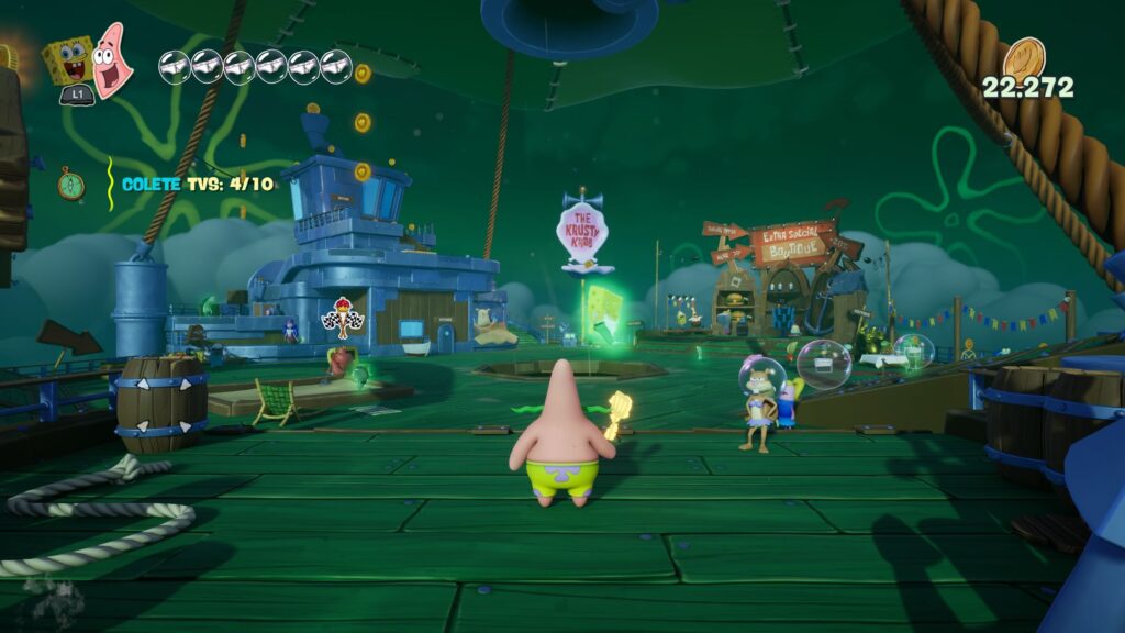 O mais interessante é que, pela primeira vez, Patrick realmente parece um protagonista completo, e não apenas um modo alternativo do Bob. Ele é tão útil quanto o esponjoso e, em alguns trechos, acaba até roubando a cena.