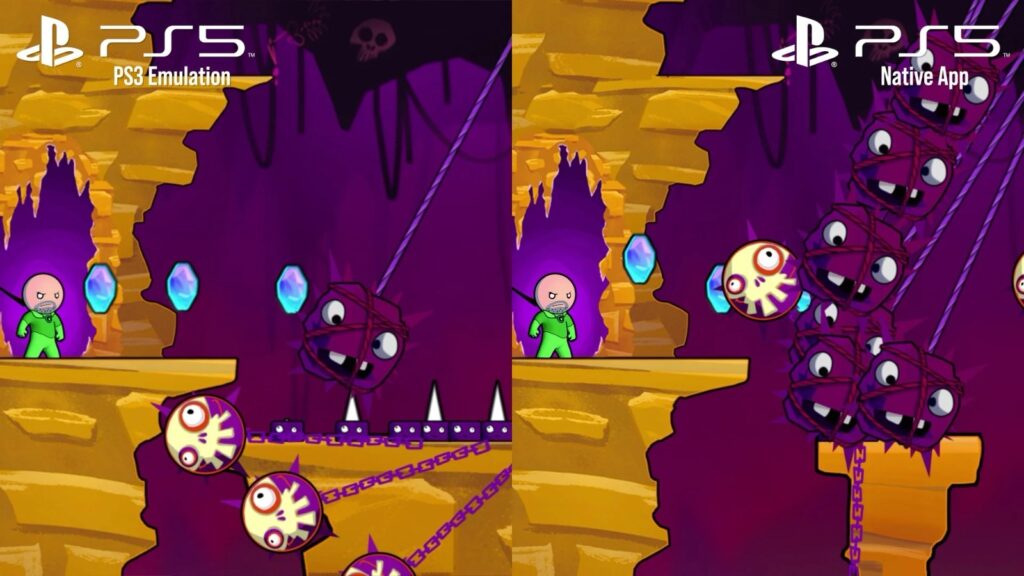 Por isso, a notícia publicada pela Digital Foundry chamou tanta atenção: o site testou o que seria o primeiro jogo de PS3 rodando por emulação local no PS5. E o título escolhido é inesperado: Cloudberry Kingdom (2013), um plataforma com fases geradas proceduralmente, conhecido por ser bem exigente (inclusive entre trophy hunters, já que a lista de troféus no PS3 é famosa pela dificuldade extrema).