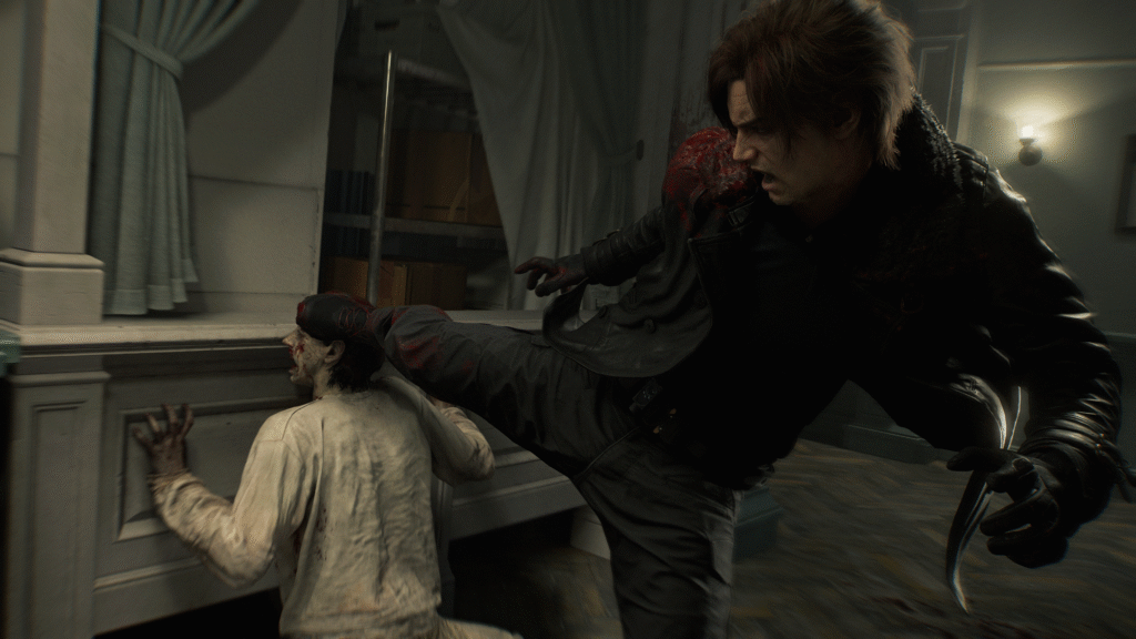 Leon surge mais experiente e brutal do que nunca. Investigando uma série de mortes suspeitas, ele domina tanto armas de fogo quanto o combate corpo a corpo, agora expandido com o uso de um novo machado. O sistema de combate permite aparar ataques inimigos, usar armas tomadas dos adversários, como motosserras, e executar finalizações impactantes que reforçam o peso de cada confronto.