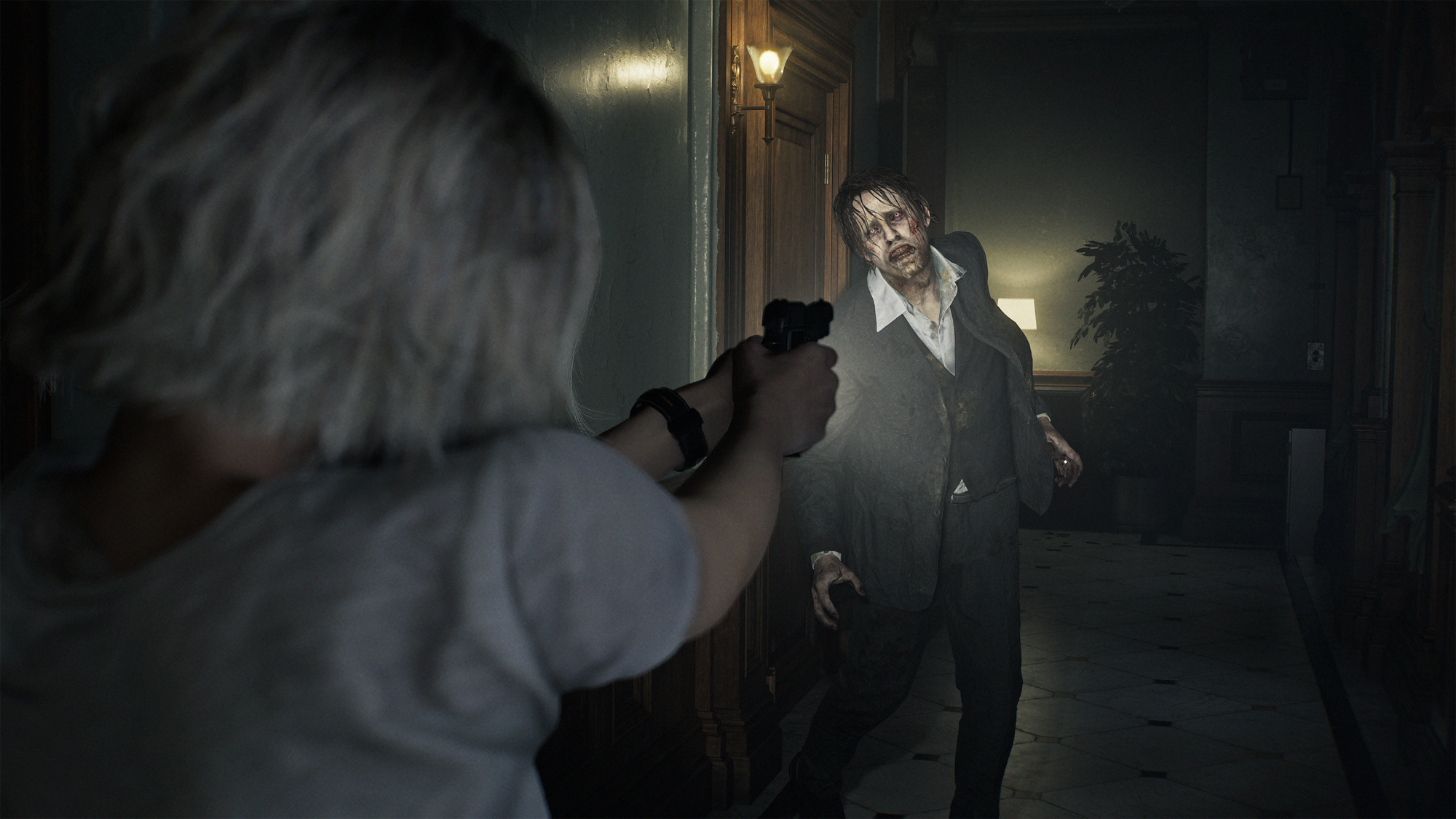 Grace, por sua vez, representa o lado mais vulnerável e estratégico do jogo. Sua jornada começa em um sanatório tomado por zumbis, onde recursos são escassos e a capacidade de carga é limitada. Cada decisão importa. Um dispositivo especial permite criar itens essenciais a partir de sangue infectado, ampliando as possibilidades de sobrevivência. Sua arma mais poderosa, o revólver de assalto Requiem, entrega um poder de fogo impressionante, mas com munição extremamente limitada, transformando cada disparo em uma escolha tensa entre o agora e o que ainda está por vir.